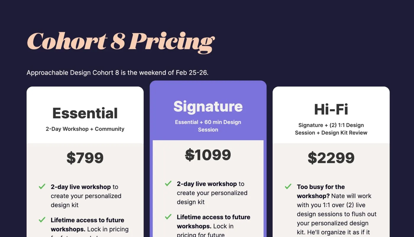 In my own workshop, I’ll provide more 1:1 support at the $2k price, and it has been purchased multiple times during several of my cohorts, because of the 80/20 rule at play.
