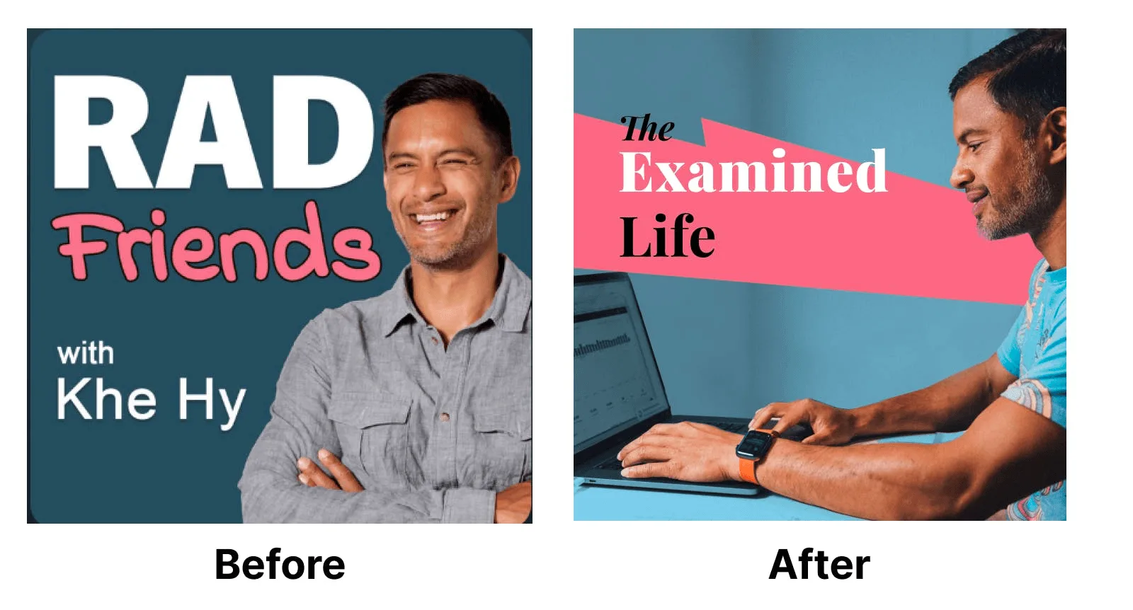 Here’s Khe’s podcast art before and after.